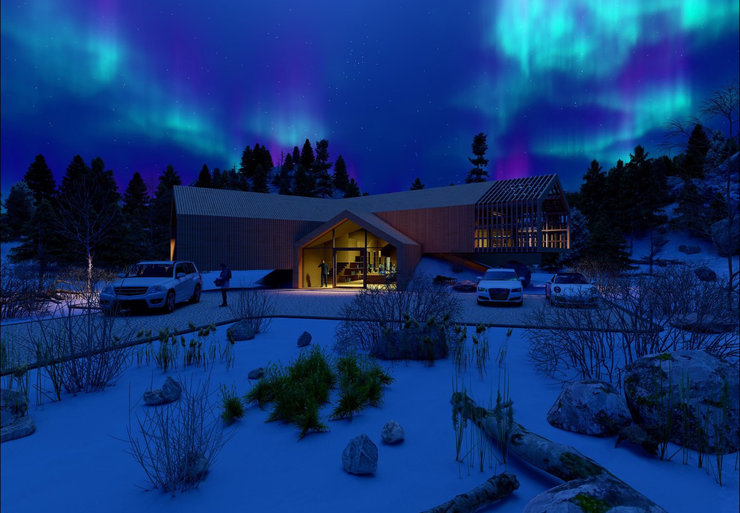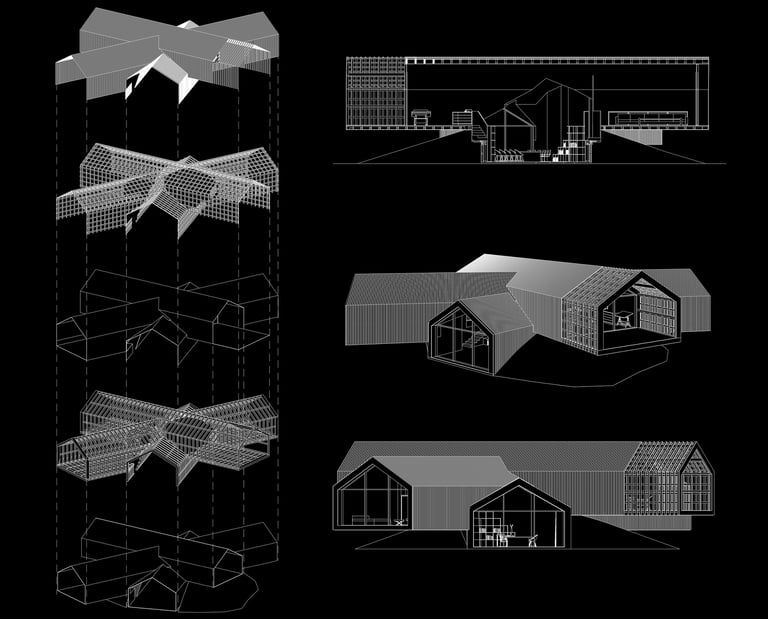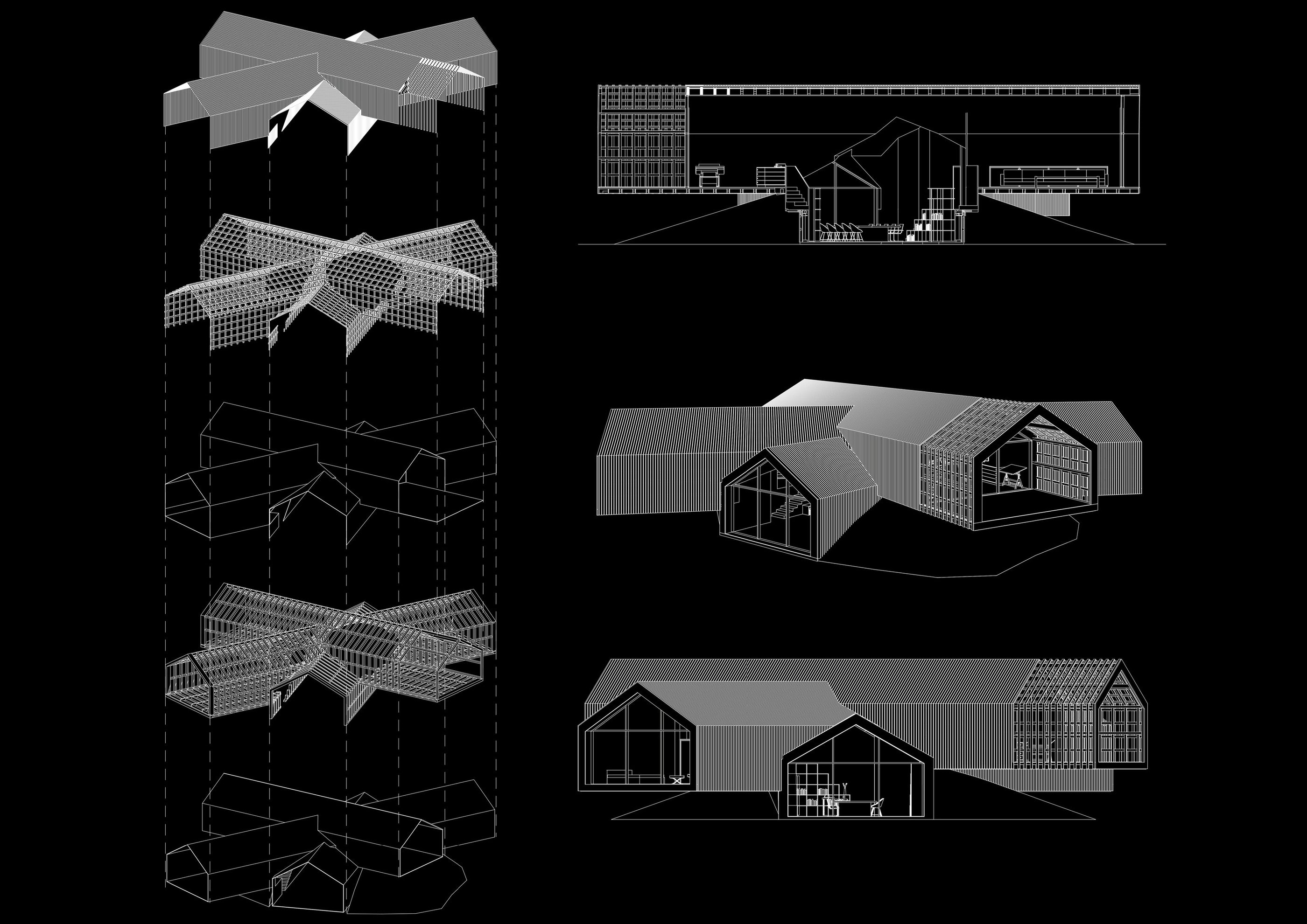 Im Wahlfach „CAD Vertiefung“ wurde den Studierenden das effektive Arbeiten mit dem Programm Archicad näher gebracht. Besonderer Fokus lag auf den 3D-Tools des Programms sowie den Schnittstellen mit anderen Programmen wie BIM, Lumion, Twinmotion, dem 3D-Druck und vor allem dem Programm Inzept3D. Inzept3D ist ein Dienst, der es dem Kunden ermöglicht, den Planungsverlauf und Fortschritt bequem im Internet-Browser zu verfolgen. Die Abschlussaufgabe bestand darin, ein bekanntes Gebäude mit spannender Architektur auszuwählen und dessen Architektursprache auf ein Einfamilienhaus herunterzubrechen. Ich entschied mich für das Vitrahaus in Weil am Rhein von Herzog & de Meuron. Die drei ineinandergeschobenen Röhren bilden auf drei unterschiedlichen Ebenen die privaten Räume. An der Schnittstelle der drei Elemente bildet sich ein sehr einladender und großzügiger Mittelpunkt für die gemeinsam genutzte Wohnfläche. Das Original besteht aus Stahlbetonröhren. Ich entschied mich jedoch dafür, die tragende Konstruktion und auch die Fassadengestaltung aus Holz zu machen. Lediglich die auskragenden Elemente sind im Bodenbereich mit Stahl verstärkt.